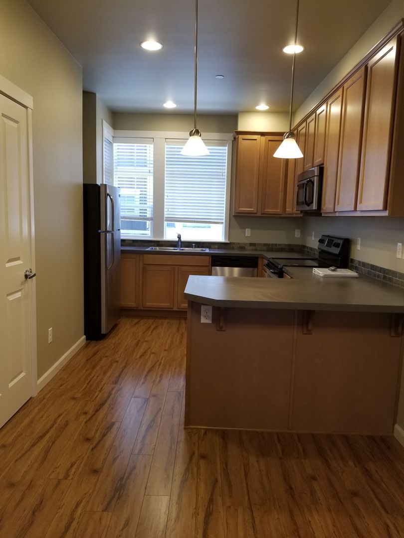 Gorgeous 3 level townhome situated in a park-like setting. Amenities include a fully equipped upgraded kitchen with premium stainless-steel appliances (refrigerator, stove, dishwasher, and microwave), disposal, pantry, tile back splashes, and taller upper cabinets for extra storage. Air conditioning, high ceilings, energy/efficient/recessed lighting, large closets, and full-sized washer/dryer. Well-designed floor plan with hardwood floors, durable carpeting, vaulted ceilings, designer color schemes, spacious rooms with open living area and plenty of natural light from oversize windows, and a private patio. Attached garage and bonus room.